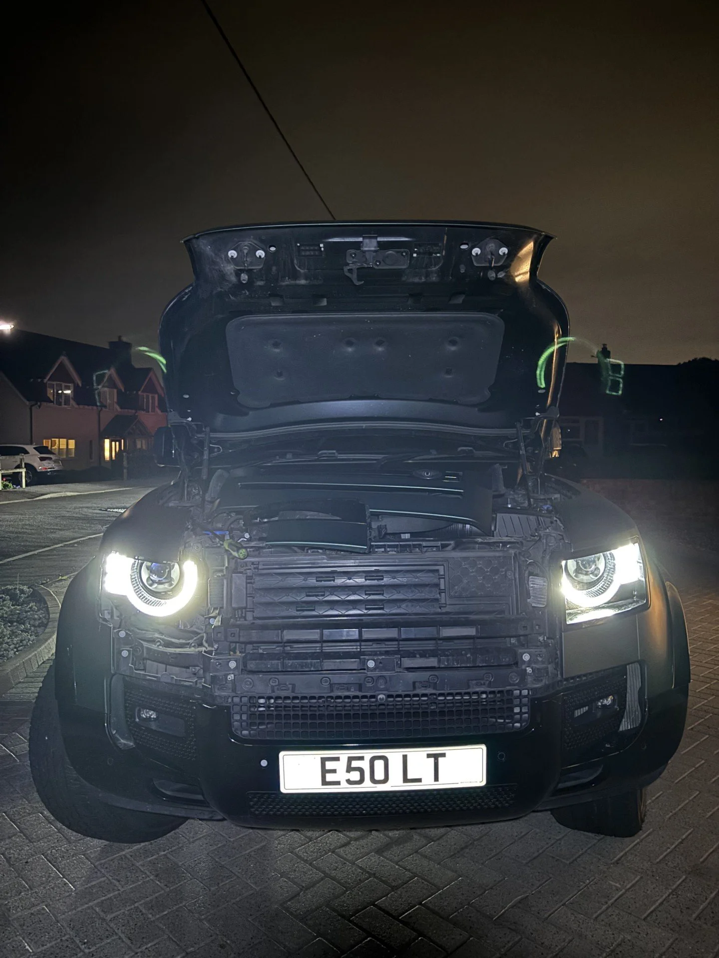 Left or right halo ring yellow, dim or out? We repair the DRL LED board (PCB) inside your sealed Defender headlamp, then reseal and test. Matrix and standard LED units covered. Get a quick quote—send a photo of your headlight.